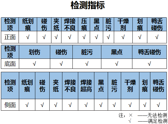 2.速度快、效率高、成本低,機(jī)器視覺檢測數(shù)量能達(dá)到250個/min,提高了生產(chǎn)效率,節(jié)約了后面的檢測人員的人力成本;