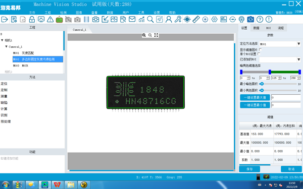MVS1.7版本是基于MVS1.6進(jìn)行了升級(jí)優(yōu)化,軟件主要是將之前基于32位系統(tǒng)開發(fā)的框架及插件移植成64位,解決了應(yīng)用過程中大像素檢測(cè)處理內(nèi)存不足的問題,同時(shí)增加了 一些便捷的功能,使得MVS1.7應(yīng)用更廣泛更便捷。 MVS1.7特點(diǎn) 增加功能: 1.通訊驗(yàn)證功能 2.服務(wù)器對(duì)接多客戶端 3.離線增加演示模式 4.設(shè)置及檢測(cè)窗口快捷縮放 5.快捷觸發(fā)相機(jī)功能 定制插件: 整合常用插件功能,提高插件使用的便捷性。 內(nèi)存擴(kuò)充: 軟件版本從X32升級(jí)到X64提升內(nèi)存使用率。 新增功能介紹 1.通訊驗(yàn)證功能 此功能是MVS增加的一個(gè)通訊驗(yàn)證功能,主要用于項(xiàng)目交付前期配合客戶快速驗(yàn)證控制軟件通訊是否正常,輸出的數(shù)據(jù)格式是否可以正常解析,便于客戶驗(yàn)證控制程序的通訊問題。參數(shù)設(shè)置界面如下圖所示:左邊為通訊驗(yàn)證窗口,右邊為通訊客戶端。 2.服務(wù)器對(duì)接多客戶端 MVS做服務(wù)器與多個(gè)客戶端通訊設(shè)置,在結(jié)果輸出配置窗口可選擇指定需要通訊的客戶端,設(shè)置界面如下圖所示: 3.離線檢測(cè)功能升級(jí) 離線檢測(cè)有兩種模式:①普通模式、②演示模式,參數(shù)設(shè)置界面如下所示: 4.設(shè)置及檢測(cè)窗口縮放功能 此功能在工程創(chuàng)建及檢測(cè)界面窗口,鼠標(biāo)滾輪可以對(duì)鼠標(biāo)所在位置進(jìn)行縮放,便于工程設(shè)置及檢測(cè)效果分析。 5.便捷觸發(fā)相機(jī)功能: 此功能主要用于工程創(chuàng)建及調(diào)試過程中便捷觸發(fā)相機(jī),查看檢測(cè)效果。 新增定制插件: 整合常用插件功能,提高插件使用的便捷性,具有代表性的插件5個(gè),如下圖所示: 內(nèi)存擴(kuò)充 電腦配置8GB內(nèi)存時(shí),MVS1.7運(yùn)行內(nèi)存可以達(dá)到6.8GB,MVS1.6運(yùn)行內(nèi)存智能達(dá)到3GB MVS1.7運(yùn)行內(nèi)存 MVS1.6運(yùn)行內(nèi)存 測(cè)試環(huán)境:圖像處理器HK-AMD7、相機(jī)HK-BL500gm、鏡頭HK-CP35mm、光源HK-RL12045W、視場(chǎng)大小62*52mm