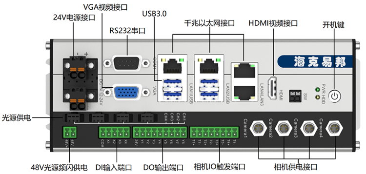 該系統采用視覺控制器HK-V6500N,將圖像處理與光源相機控制融為一體,而實現視覺處理與光源相機控制有效融合,節約成本;同時也為用戶提供良好的視覺圖像采集解決方案。具有集成度高、操作簡便、設置靈活、穩定可靠等特點。