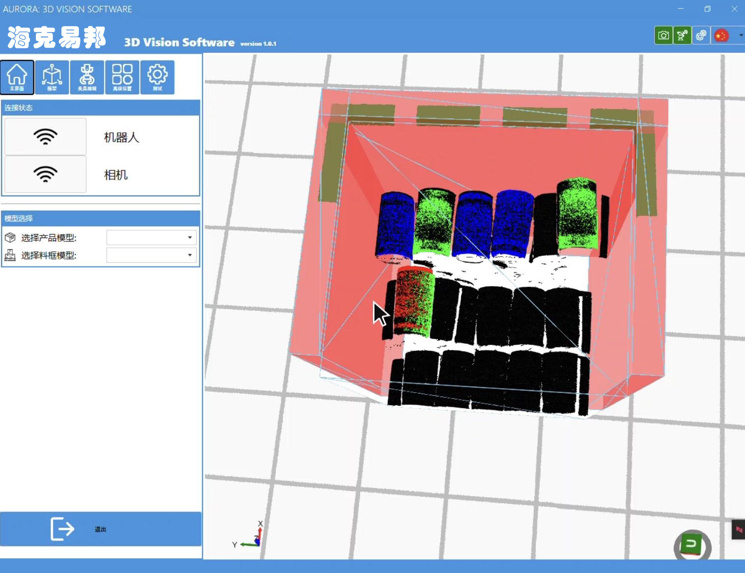 毛刺套3D視覺系統定位系統采用3D結構光相機實時定位缸套姿態,然后控制機器人將缸套從料框中抓取到產線上進行加工。該系統可以根據周邊設備干涉及產品姿態實現自動避障, 選擇時間最短或距離最優的路徑,自動規劃抓取以及從料框退出的軌跡。